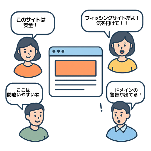 ⚠️ 警告が表示された場合は「サイトにログイン」をしないでください、慎重に判断し、必要に応じてサイトにメッセージ残し共有することをお勧めします。 ほかのユーザーが同じサイトにアクセスした際に、あなたのメッセージが表示され、注意を促すことができます。