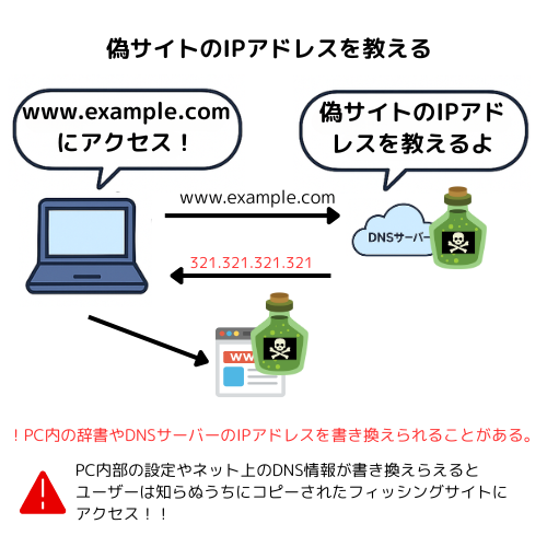 しかし、このDNSの仕組みは「キャッシュ」に頼ることが多く、悪意ある第三者によって偽のIPアドレスに書き換えられる(DNSスプーフィング)リスクがあります。 これにより、本物そっくりのフィッシングサイトへ誘導され、パスワードやウォレット情報が盗まれるといった被害が起きることがあります。